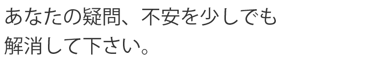 少しでもあなたの不安が解消して頂ければ嬉しく思います。 |