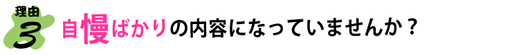 自慢とは「こだわり」や「仕様説明」など、誇らしげに語っているだけの広告の事です。